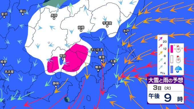 【東京の雪情報】多摩西部では「警報級の大雪」の恐れも… 予想以上に地上の気温が低くなった場合は23区でも積雪の可能性あり 多摩西部15cmの降雪予想 伊豆諸島は大雨か 最新シミュレーション予想あり 3時間前