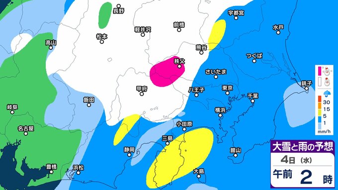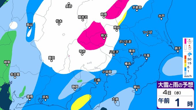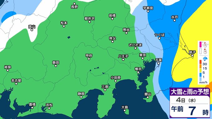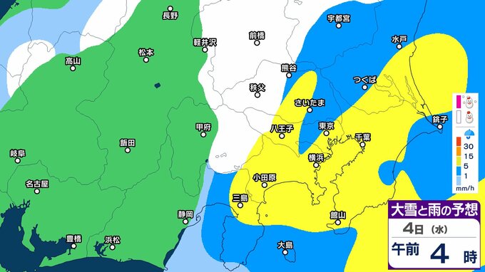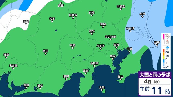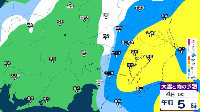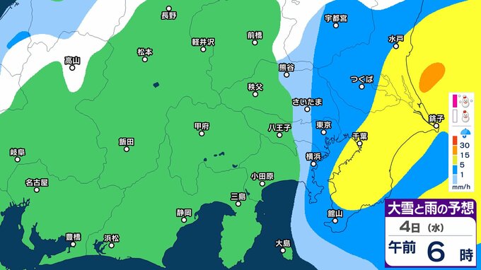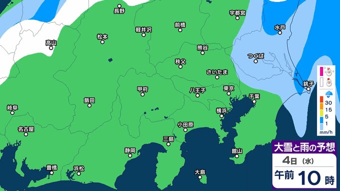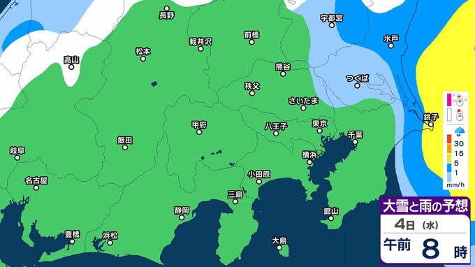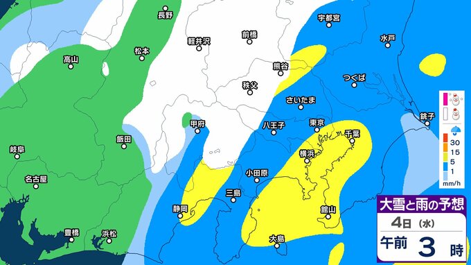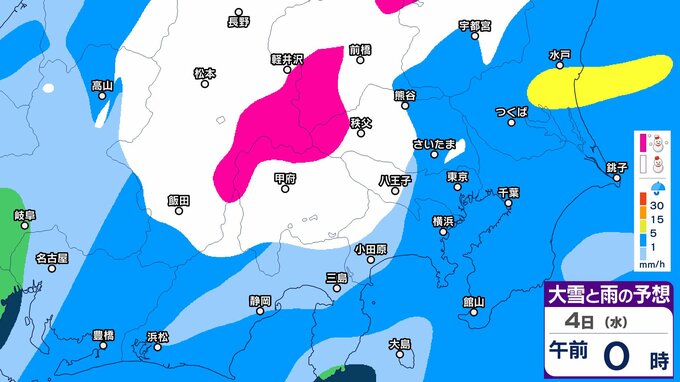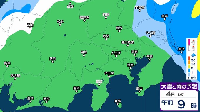 【大雪情報】東京・神奈川・千葉・埼玉・茨城・栃木・群馬・山梨・長野 関東エリア 3日(火)~6日(金)1時間ごとの雪雨シミュレーション 東京・多摩西部では10センチの積雪予想【気象庁/3日発表】 3時間前