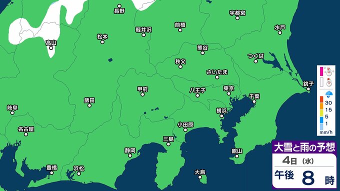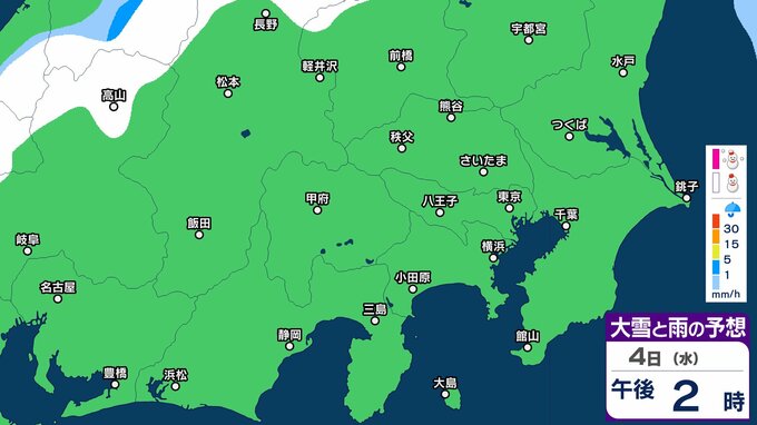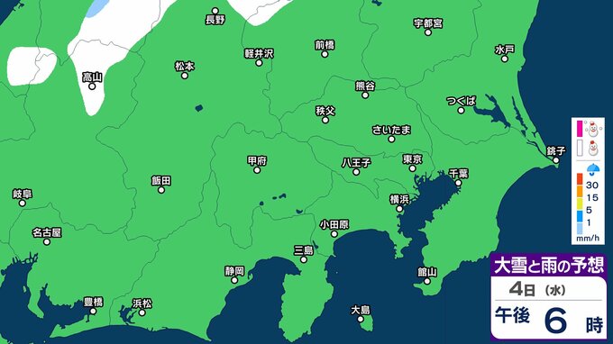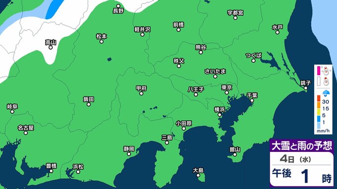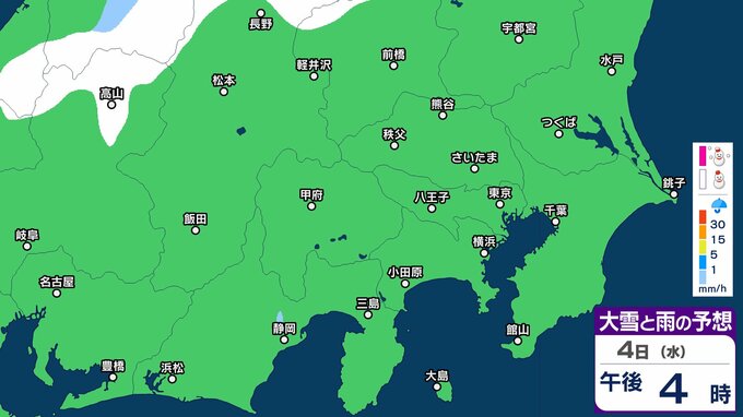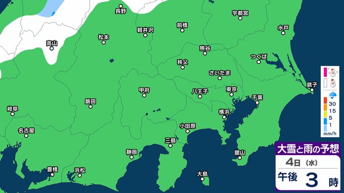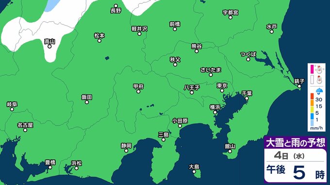 【大雪情報】東京・神奈川・千葉・埼玉・茨城・栃木・群馬・山梨・長野 関東エリア 3日(火)~6日(金)1時間ごとの雪雨シミュレーション 東京・多摩西部では10センチの積雪予想【気象庁/3日発表】 3時間前