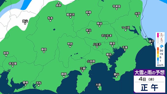【大雪情報】東京・神奈川・千葉・埼玉・茨城・栃木・群馬・山梨・長野 関東エリア 3日(火)~6日(金)1時間ごとの雪雨シミュレーション 東京・多摩西部では10センチの積雪予想【気象庁/3日発表】 RSK山陽放送 2026年3月3日(火) 20:00 国内 天気 4日(水)午後 【画像】3日(火)~6日(金)1時間ごとの雪雨シミュレーション 【画像】3日(火)~6日(金)1時間ごとの雪雨シミュレーション