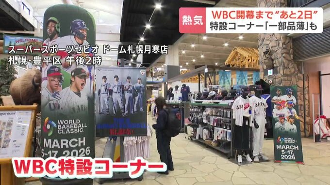 ゼビオドーム札幌月寒店には、2月21日からWBCの特設コーナーが登場。名前入りユニフォームなど、関連グッズ約300点を販売しています。