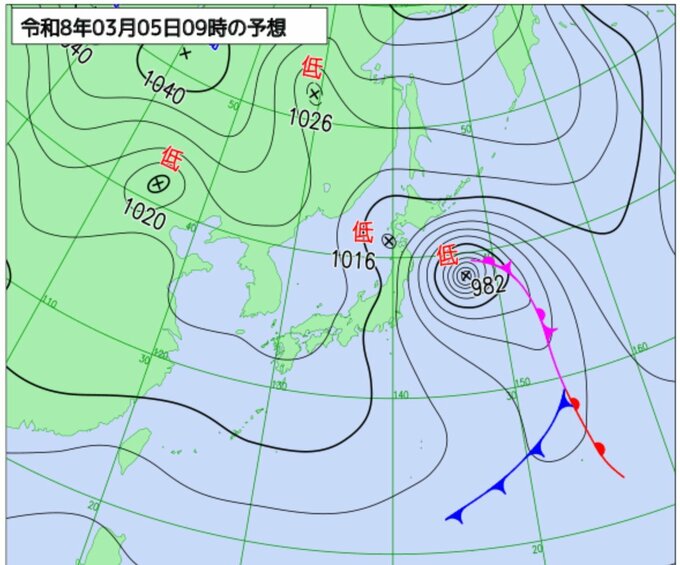 関東地方では、4日未明から昼過ぎにかけて、海上で非常に強い風が吹く見込みです。低気圧の進路や発達の程度によっては、暴風となる可能性があります。