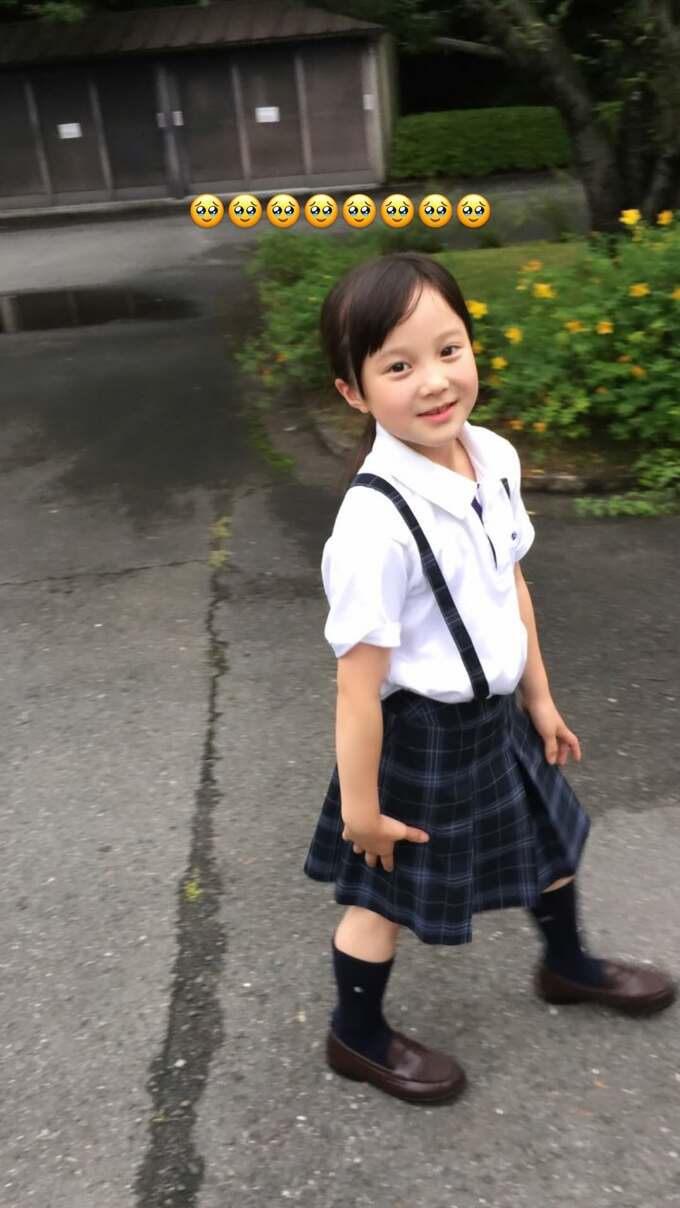 真凜さんはストーリーズに、紗来さんの幼少期の写真を投稿。ローファーにグリーンのチェックのスカートと白の半袖シャツの紗来さんは、小学校に進学したばかりの年頃のように見えていて、真凜さんは涙目の絵文字を並べて、愛しさいっぱいの感情を添えています。さらに、高層ビルの窓から夜景を見下ろす中でちょっと振り向いた表情も。