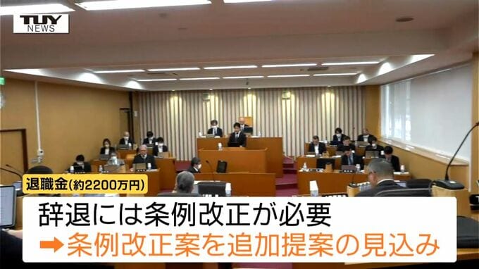 西川町によりますと、退職金はおよそ2200万円あまりで退職金を辞退するためには条例を改正する必要があり、今後、条例改正案が追加で提案される見込みだということです。