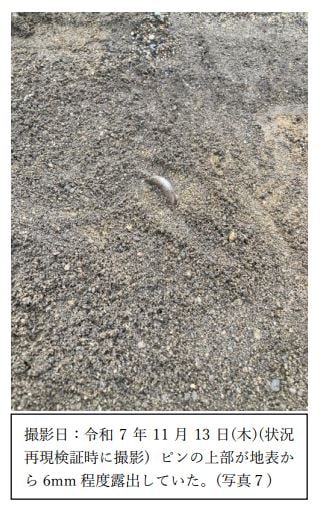 原因となったピンは長さ15センチほどの金属製で、白線を引いてバッターボックスを作る際に目印になるように利用者が埋めたものとみられ、事故直後に撤去されましたが、教育委員会が現場検証のため再現した際には、地表から6ミリほど露出していた状態だったことが確認されました。