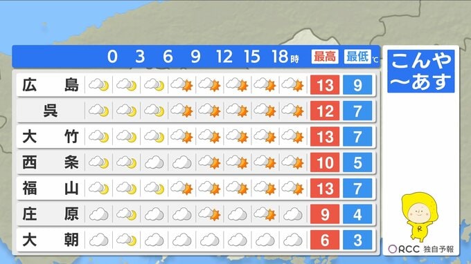 あす朝の冷え込みは沿岸部では引き続き弱いですが、日中の気温があまり上がりません。さらに夜にかけて気温が下がり、北部や内陸部ではあさって朝にかけて氷点下の冷え込みとなる見込みです。きょうより厚着をした方が良いでしょう。風を通しにくい服装でお過ごしください。