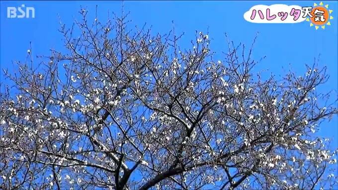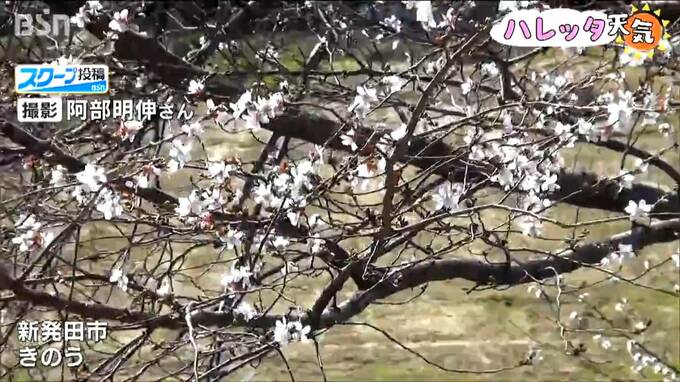 新潟県新発田市で2日、一足早い桜の映像が撮影されました。市内を流れる加治川の堤防にある早咲きの桜です。