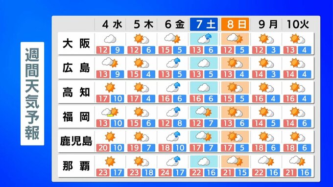 鹿児島:20℃ 那覇:23℃