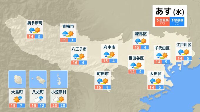 伊豆諸島では、3日夜のはじめ頃から4日明け方にかけて、土砂災害に注意・警戒してください。多摩地方の山沿いや山地では、4日未明にかけて、大雪による交通障害や路面の凍結に注意してください。