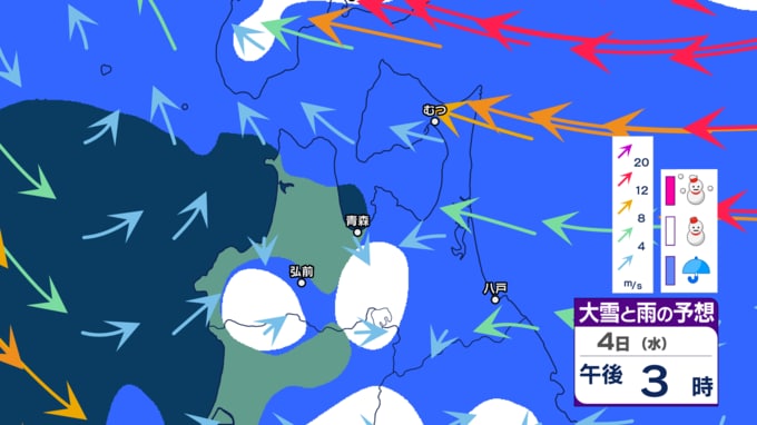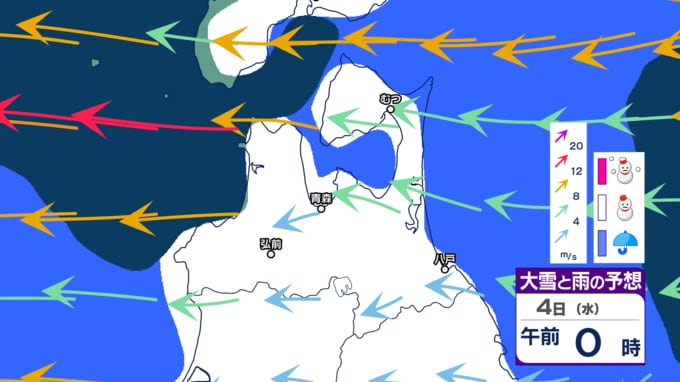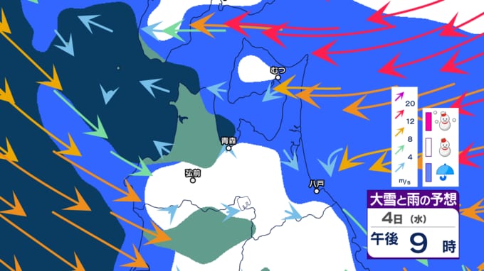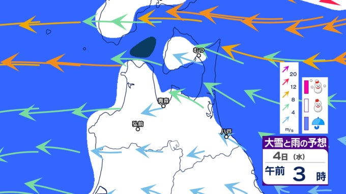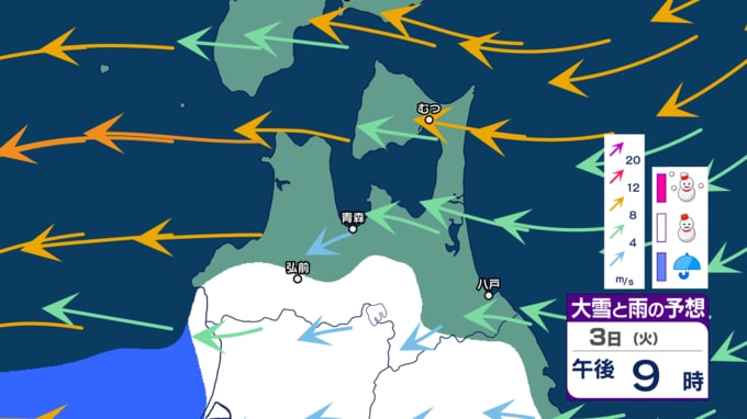 【青森県の大雪情報】春から再び冬に 4日~5日にかけ三八上北で「警報級の大雪」の恐れも… 24時間の降雪量が平地で30cm予想も いつ・どこで雪は降る? 最新のシミュレーション予想あり 青森テレビ 2026年3月3日(火) 21:37 国内 【大雪などの予想シミュレーションを見る】 (3月3日~4日、5日、6日、週末7日、週末8日~来週9日) 【この記事を最初から読む】