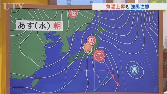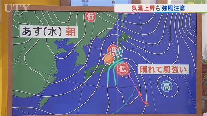 このため低気圧が離れると各地で晴れとなりますが、注意していただきたいのは、