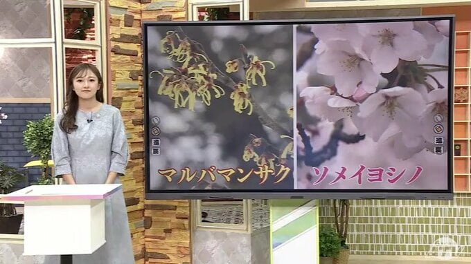 「(マルバマンサクの)開花を受けて、弘前公園では桜の開花予測を翌日からスタートするが、2月末に向けて非常に平均気温が高めに推移したので、その影響でマルバマンサクも早い開花となった」