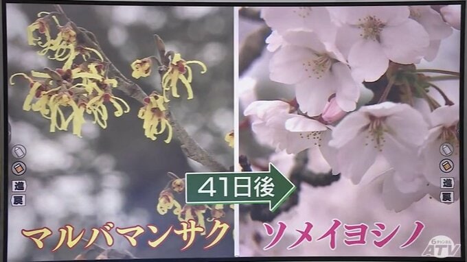 過去30年の平均では、マルバマンサクの花が開いてから41日後にサクラが咲くとされています。