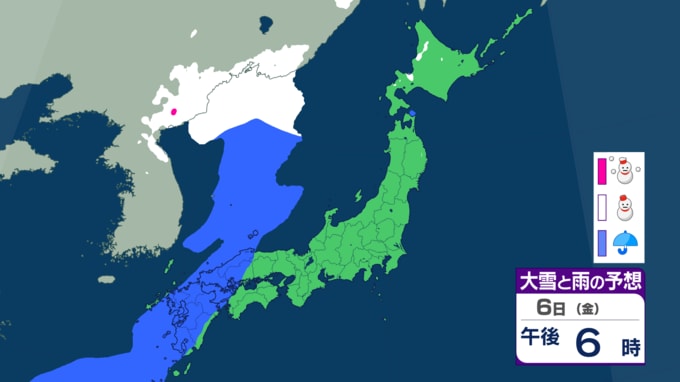 多雪地は融雪に注意:北〜西日本では6日にかけて、上空の気温が平年より5℃程度高くなる所があります。降水の影響も加わり雪解けが進むため、なだれや融雪に注意が必要です。