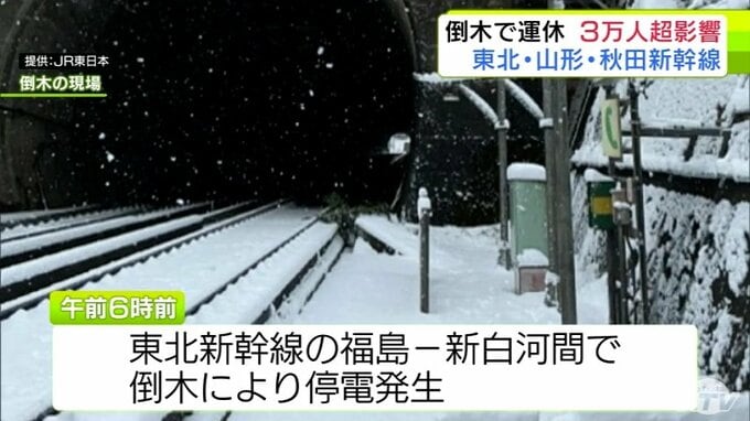 運転見合わせは午前5時50分頃に新白河―福島駅間で倒木により発生した停電による影響でした。