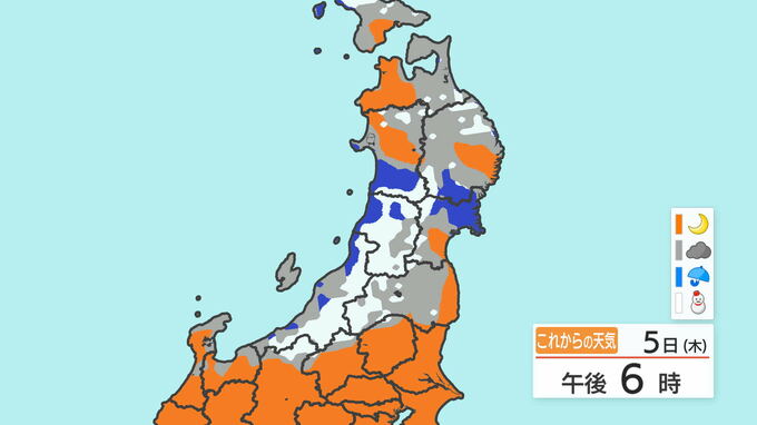 4日6時から5日6時までに予想される24時間降雪量は多い所で、
