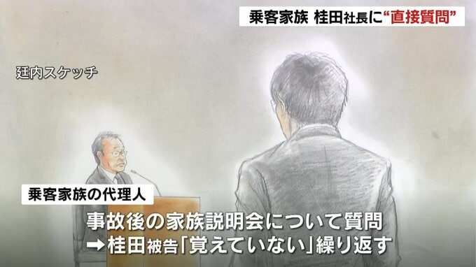 4日は乗客家族が桂田被告に質問しますが、先立って乗客側の代理人弁護士が事故後の家族への説明について質問すると、桂田被告は「覚えていない」と繰り返しました。