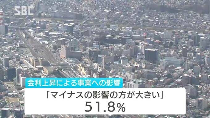 金利上昇による事業への影響について、「マイナスの影響の方が大きい」と回答した県内企業は、全国平均を7.5ポイント上回り、51.8パーセントに上りました。