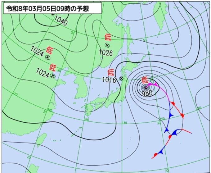 4日は前線を伴った低気圧が関東の東にあって、急速に発達しながら東北東へ進んでいます。このため、関東地方の海上では4日昼過ぎにかけて非常に強い風が吹き、4日夕方にかけてうねりを伴って大しけとなる所があるでしょう。