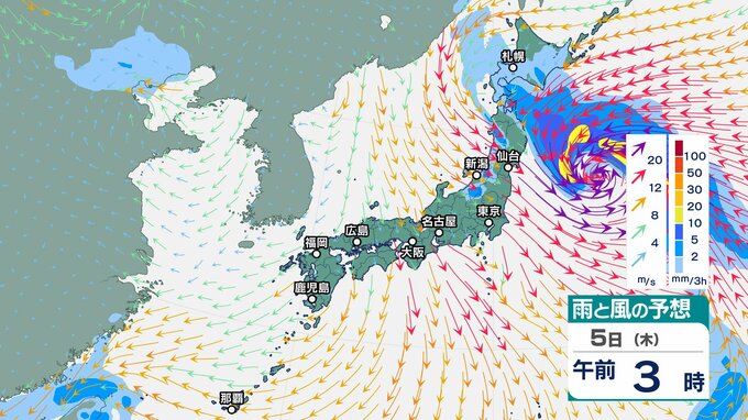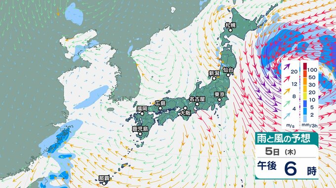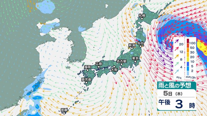 【関東地方】急速に発達する低気圧で大しけに警戒 海上では最大風速25m、波の高さ6mの予想、外出や交通機関への影響に注意【雨と風のシミュレーション】 チューリップテレビ 2026年3月4日(水) 15:05 国内 3月5日(水)雨と風のシミュレーション