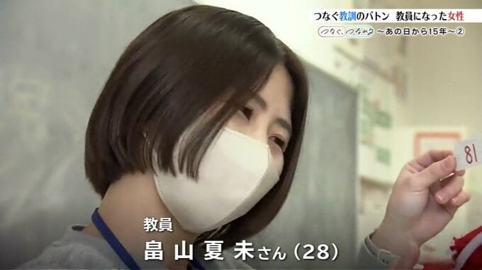 2回目に紹介するのは、中学生で震災を経験し、現在は教員となって教訓のバトンを子どもたちにつなぐ女性です。