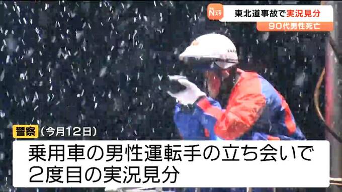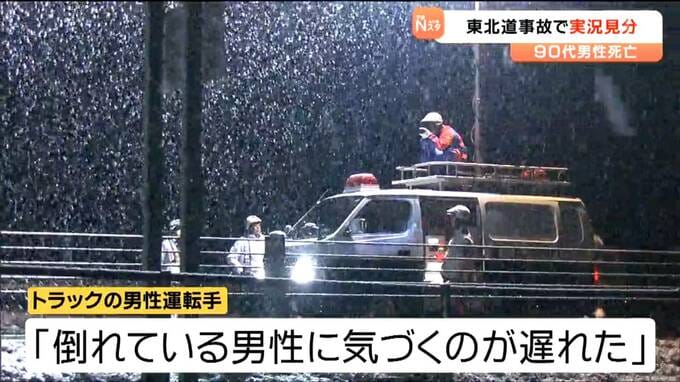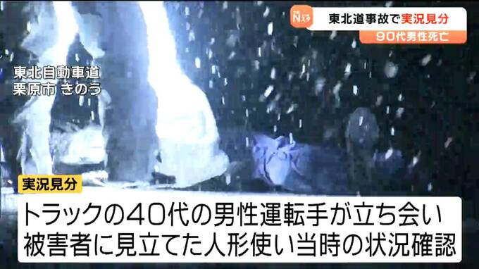 2026年1月、宮城県栗原市内の東北自動車道で路上にいた90代の男性が車2台に立て続けにはねられ死亡した事故で、警察は3日夜、運転手の立会いのもと実況見分を行いました。