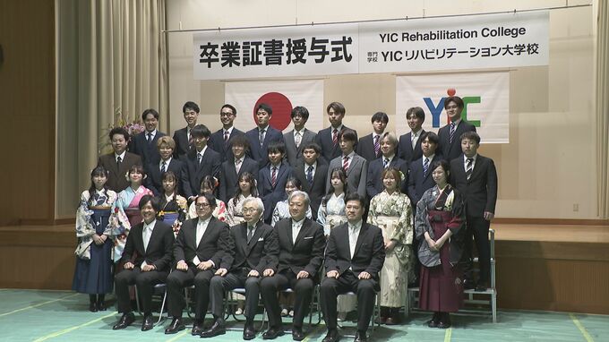 YICリハビリテーション大学校は2003年4月に開校し、20回目の卒業式を迎えました。卒業生は全員が病院や高齢者施設などへの就職を予定していて、9割は県内に就職するということです。