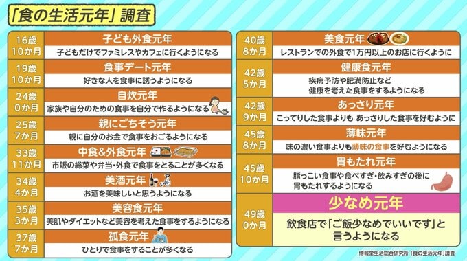 調査の結果、美食~健康食~あっさり~胃もたれ~ごはん少なめ、が全部40代に詰め込まれているという結果に。