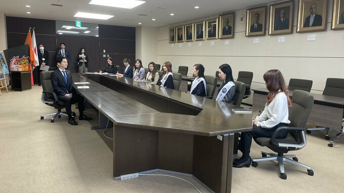 馬場市長を訪ねたのは、7月に行われる「ミセスユニバース」日本大会のファイナリスト7人です。「ミセスユニバース」は、美しさだけでなく、社会貢献への思いや行動力を重視し、これまでの人生経験を糧に新たな挑戦に臨む女性を応援するコンテストで、ボランティアなどの社会貢献活動を推進する役割を担います。
