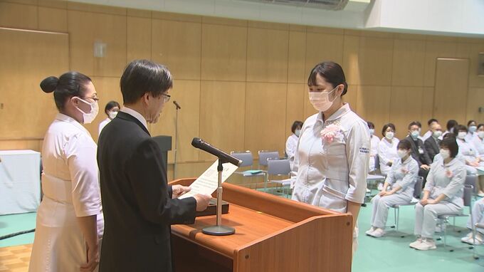 4日、鳥取県米子市の米子医療センター附属看護学校で行われた卒業式には、卒業生26人が出席。