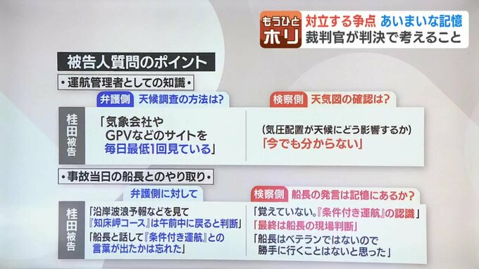 一方、検察側の「船長の発言は記憶にあるか?」の質問には「そこまで覚えていない『条件付き運航』という認識」