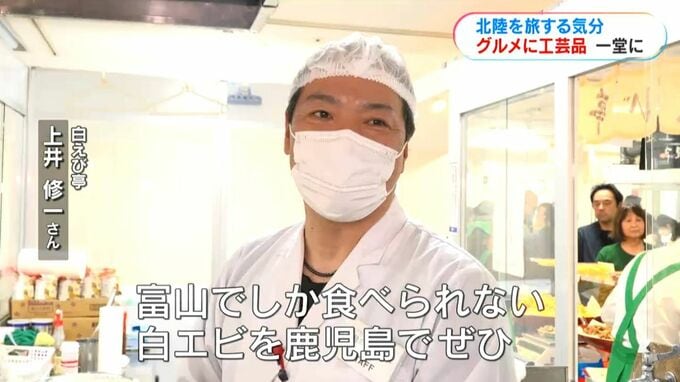 石川・富山・福井を旅気分!グルメと工芸1500点「北陸三都 味と技の旅」きょう4日から山形屋で 鹿児島市 南日本放送 2026年3月4日(水) 19:19 国内 そして富山は、名産の白エビを天ぷらで提供します。 (白えび亭・上井修一さん)「(能登半島地震以降)どんどん少なくなってきている。富山でしか食べられない白エビを鹿児島でぜひ」 また、インパクト抜群の「富山ブラックラーメン」も初登場です。