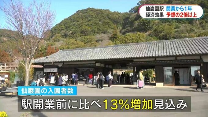また、駅の向かいにある仙巌園の入園者数も、駅が開業する前に比べ13%増加する見込みです。