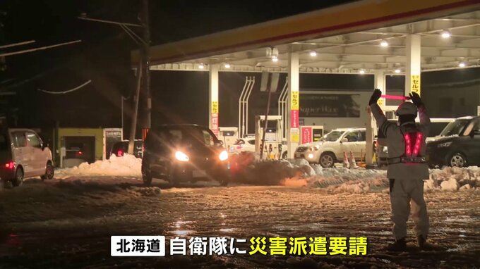 暴風雪の影響で北海道・紋別市では全域が停電し、道は自衛隊に災害派遣を要請しました。記者「紋別市中心地の市街地です。現在、停電が発生していて、信号のランプが消えています。付近のドラッグストアを見ると、…