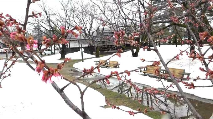 3日、新潟県上越市の高田城址公園で桜が開花しました。