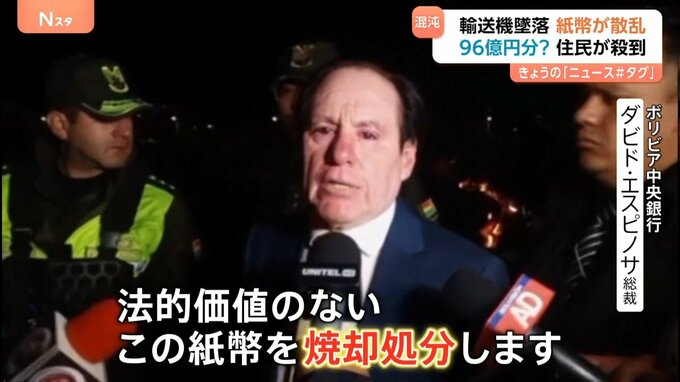 中央銀行は輸送機が運んでいた紙幣は価値がないと発表。その場で焼却することにしたのです。