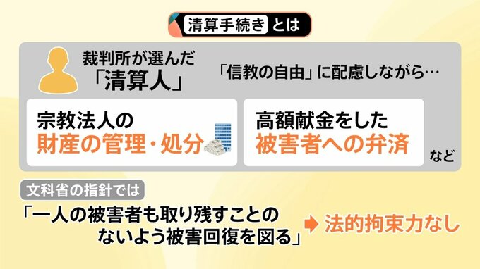 「清算手続き」では、裁判所が選んだ「清算人」が「信教の自由」に配慮しながら、
