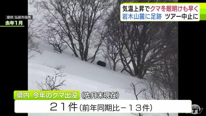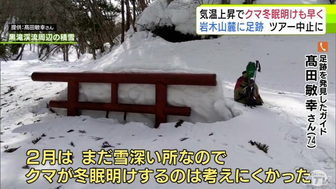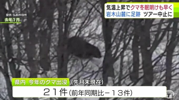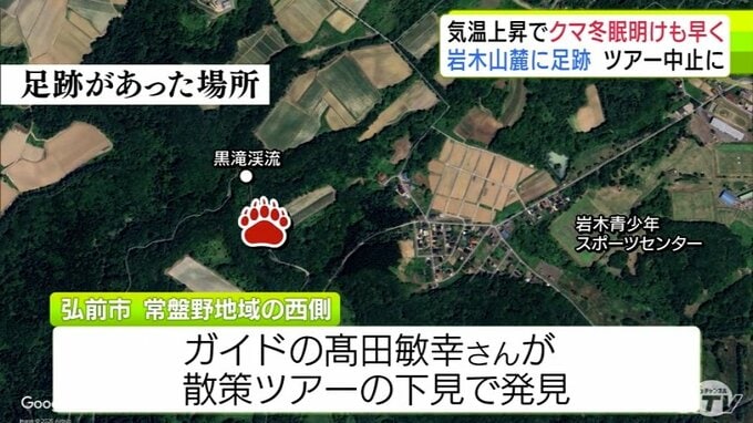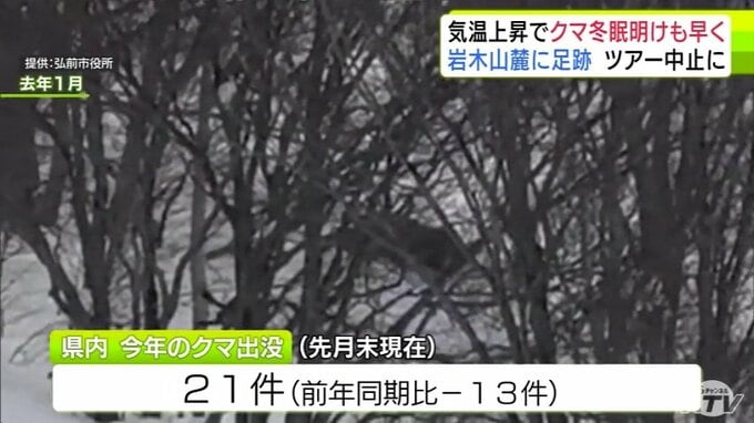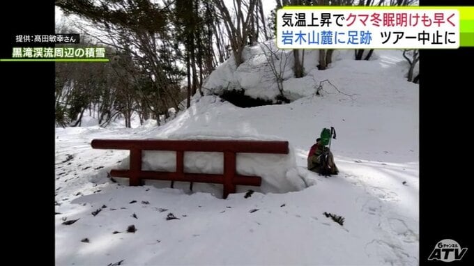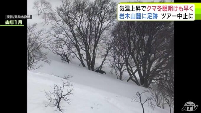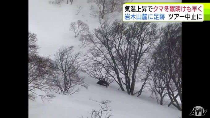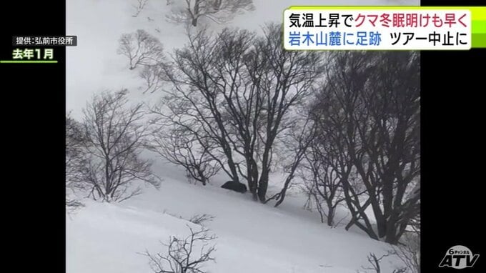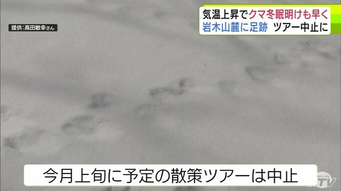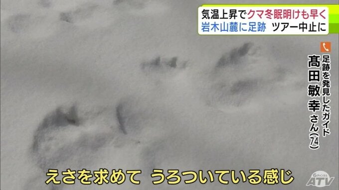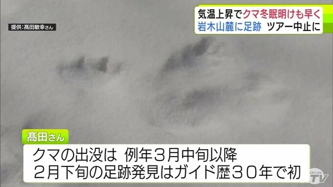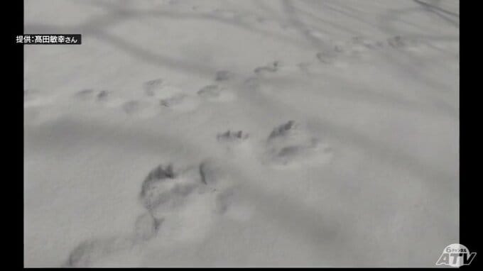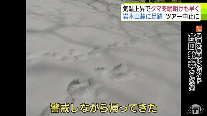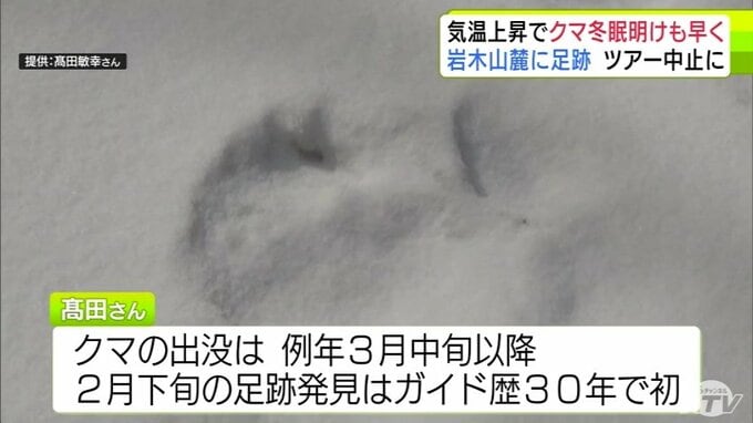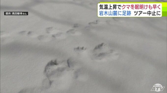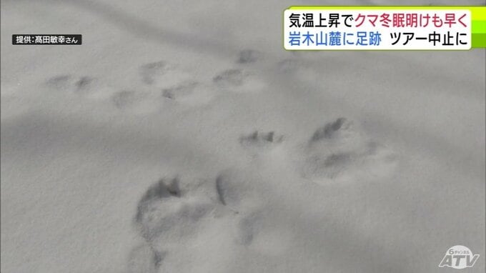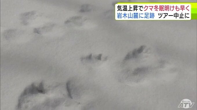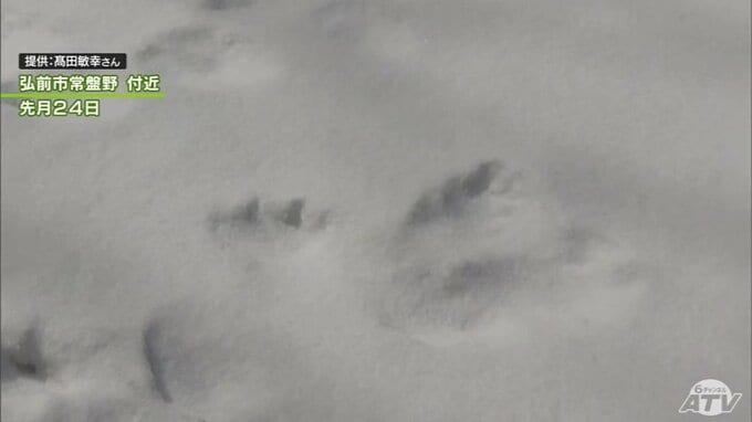 「クマの足跡」例年より1か月ほど早く雪山に… 爪の形が“くっきり”岩木山麓に 親子か 発見したガイド歴30年の男性もこの時期に見つけるのは初めて「えさを求めてうろついている感じ…警戒しながら帰ってきた」 散策ツアーは中止に 3時間前