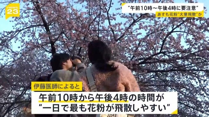 また、午前10時から午後4時が“一日で最も花粉が飛散しやすい”とされるため、この時間帯の外出には、より注意が必要だといいます。