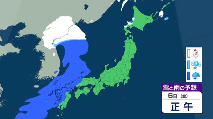 現在の低気圧が遠ざかるのも束の間、あす6日(金)朝までには日本海西部に新たな低気圧が発生し、前線を伴って発達しながら東北東へ進む予想です。