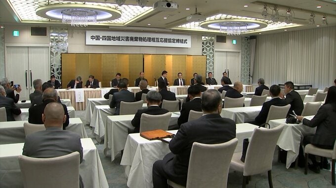 南海トラフ巨大地震などの大規模な災害が発生した際に迅速な協力要請ができるようにと、中四国9県の産業廃棄物処理業者でつくる協会がきのう(3月4日)、応援協定を結びました。
