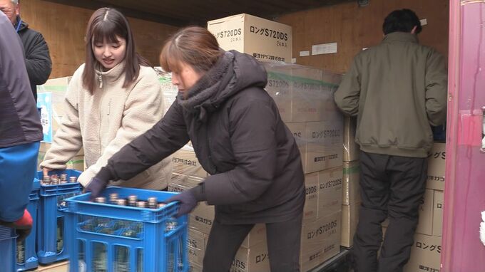 4日は、本州一寒いと言われる盛岡市薮川のレジャー施設「まほら岩手」に設置された雪を利用した天然の冷蔵室に日本酒2000本が運び込まれました。