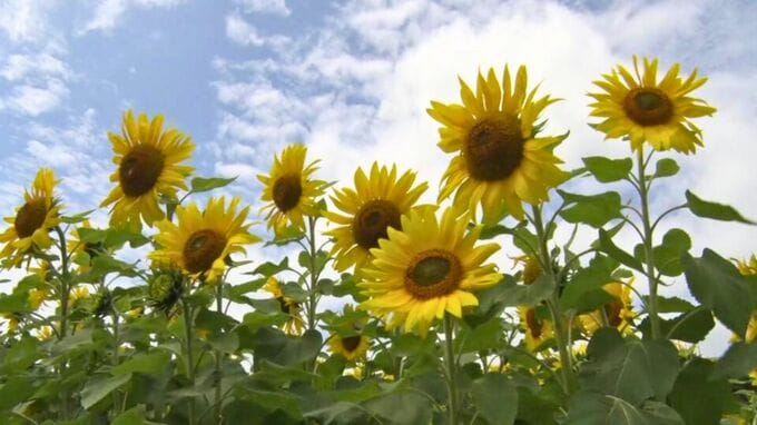 通りがかった観光客も花をバックに記念撮影するなど、島での和やかなひと時を楽しんでいました。ヒマワリはしばらくの間、島を訪れる人を明るく出迎えてくれそうです。