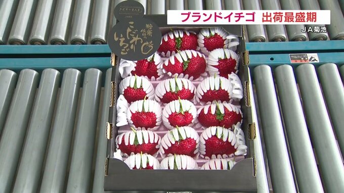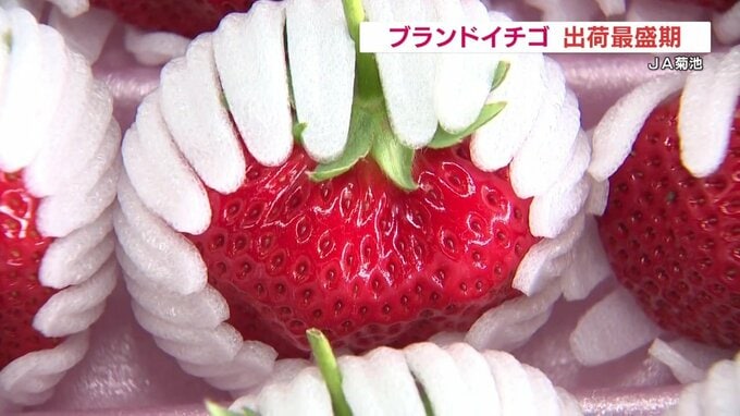 大粒で糖度の高いブランドイチゴが、熊本県のJA菊池で出荷の最盛期を迎えています。