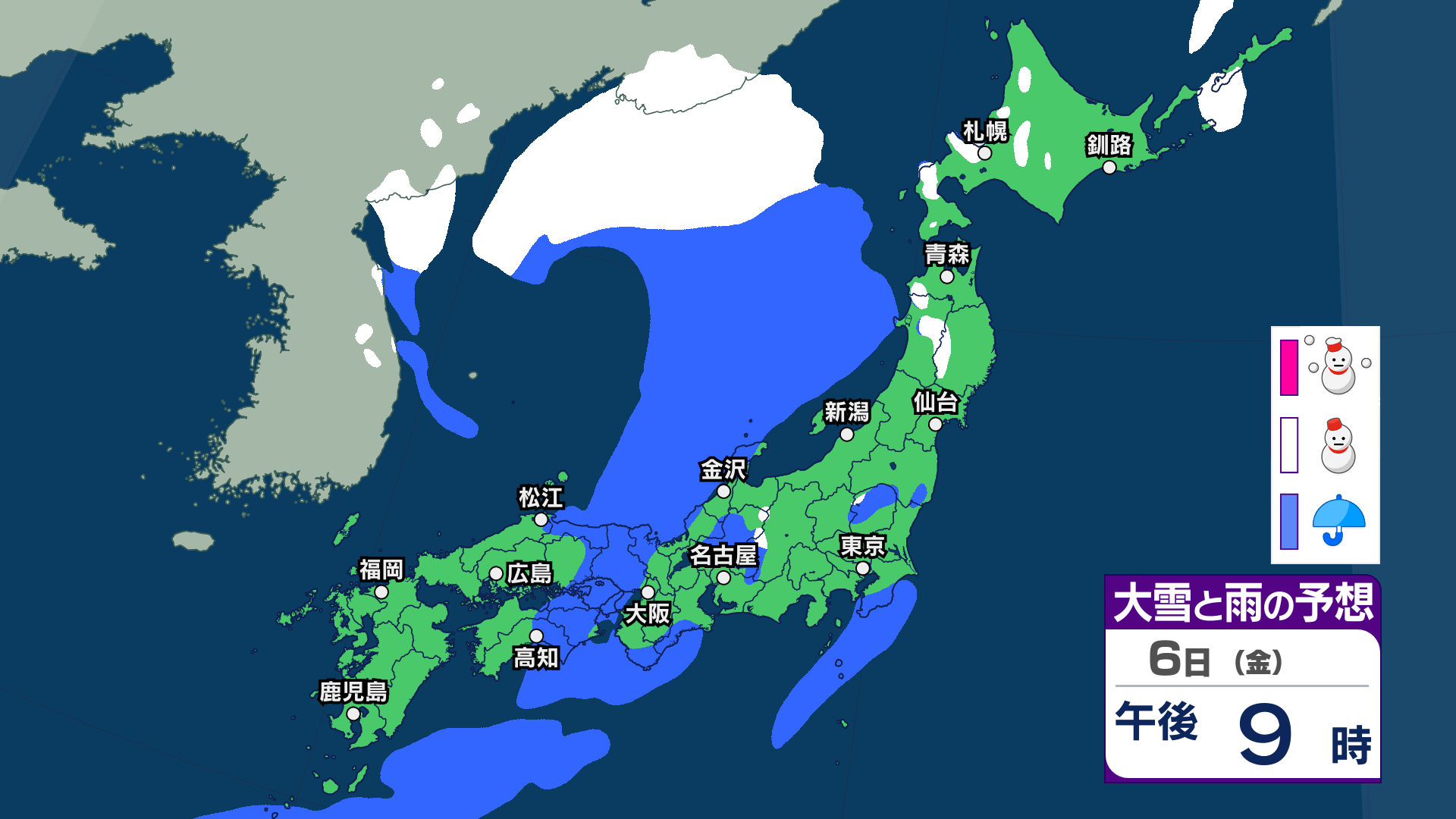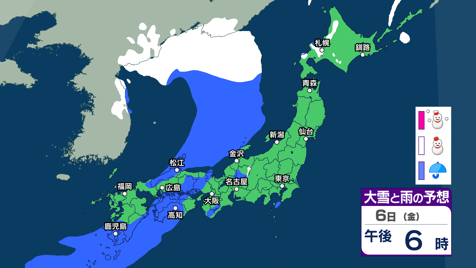 7日(土)の雨と雪のシミュレーション