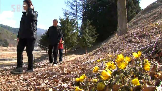 松本市四賀地区では、フクジュソウが見ごろを迎えています。