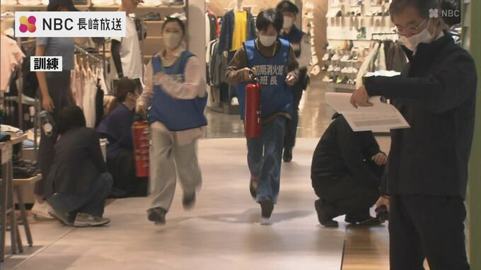 「春の火災予防運動」に合わせて、5日朝、長崎市の複合商業施設で、地震や火災・津波を想定した消防訓練が行われました。