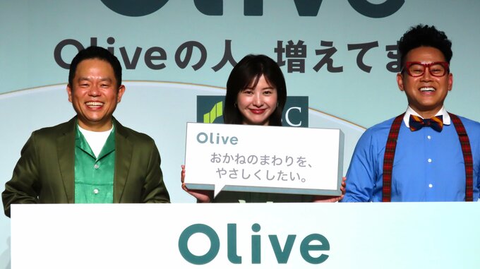 俳優の吉高由里子さん、お笑いコンビ「ダイアン」の津田篤弘さん、お笑い芸人の宮川大輔さんが、Olive 春のアップデート&新CM発表会に登場しました。