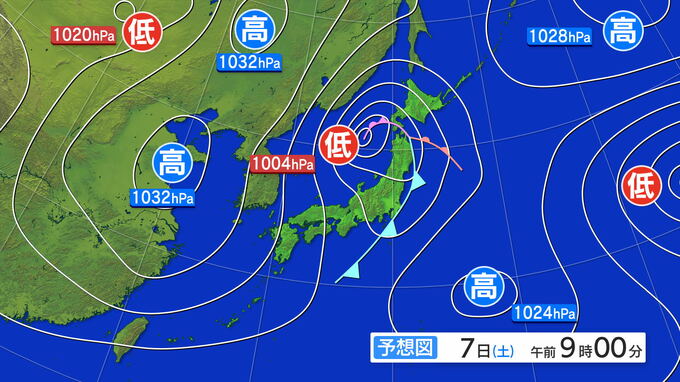 7日(土)にかけては、寒冷前線が通過し、近畿から東北にかけて雨雲がかかりそうです。大気の状態が非常に不安定になり、雨の降り方が強まるところもあるでしょう。