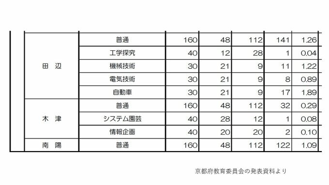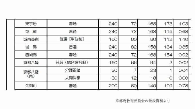 【各校の倍率を見る】東氏、莵道、城南菱創、城陽、西城陽、京都八幡、京都八幡(南)、久御山